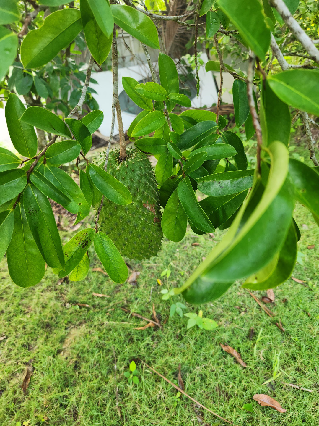 Weeks after waiting for two soursops on our tree to get ripe … days of constantly coming home from work and going under the tree first thing … to check if they were still there … remembering the last one that some poor, presumably hungry soul had stolen … one Friday afternoon … I didn’t look for them.